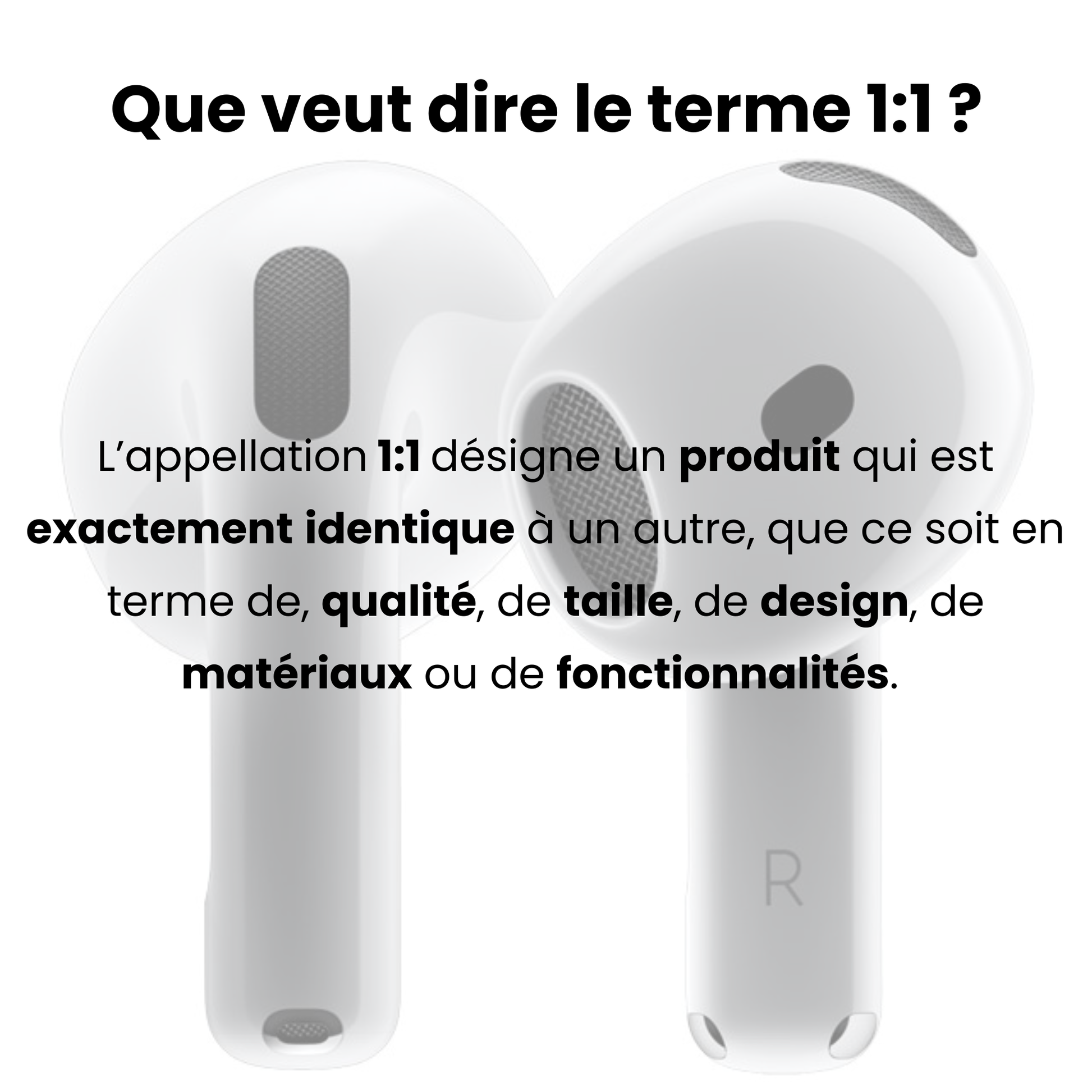 L’appellation 1:1 désigne un produit qui est exactement identique à un autre, que ce soit en terme de qualité, de taille, de design, de matériaux ou de fonctionnalités.