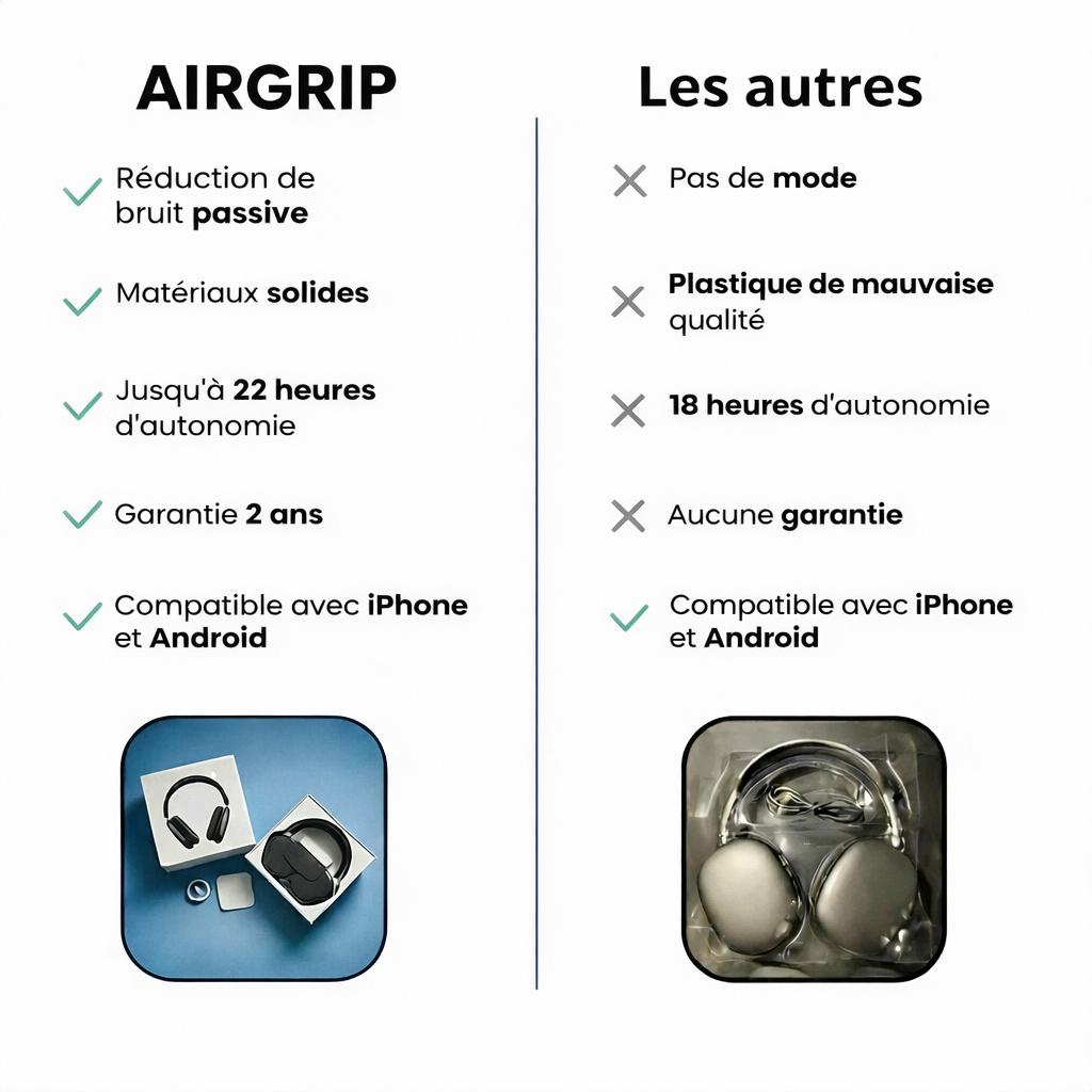 Nos produits sont moins chers car chez AirGrip, vous payez le produit à sa juste valeur. Vous ne payez pas un marketing ou un logo.